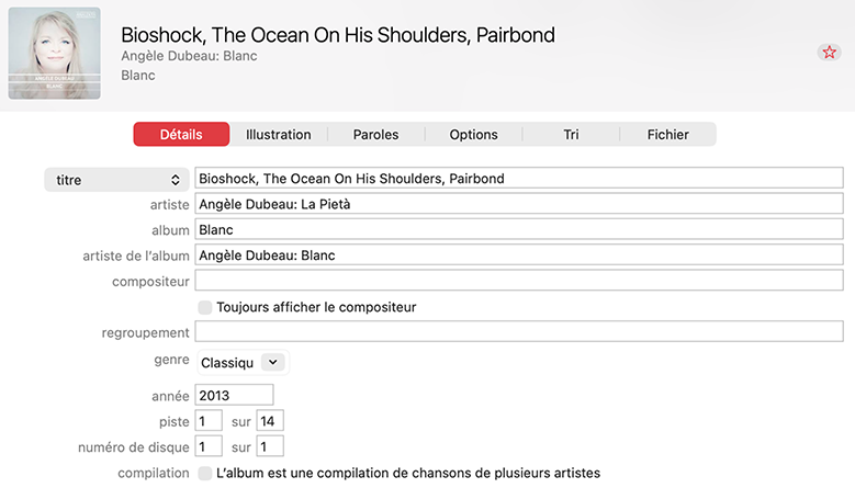 Si vous importez de la musique et que la description des pièces est : Piste 1, Piste 2… c’est que vous n’avez pas récupéré les étiquettes (tags) en même temps.