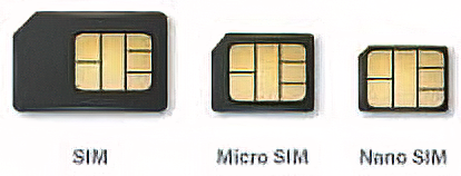 La carte SIM est la petite puce en plastique insérée dans le téléphone qui vous permet de vous connecter à votre fournisseur cellulaire. Trois formats de cette carte sont illustrés ci-dessus.