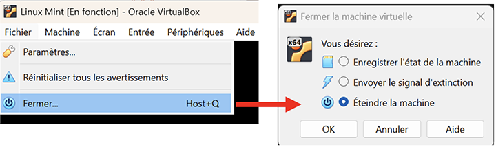 Bien fermer une machine virtuelle