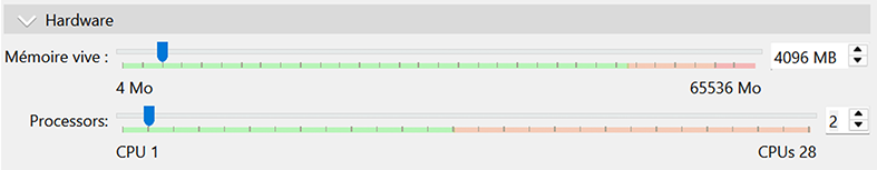 Niveau processeur, je vous recommande un minimum de 2. Voici, donc, ce que vous devriez retrouver pour cette section.