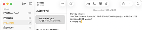 Voici une note commencée sur le Mac :