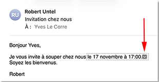 Je reçois une invitation par courriel pour aller chez Robert. J’ouvre le courriel dans Mail sur mon Mac ou mon iPad.