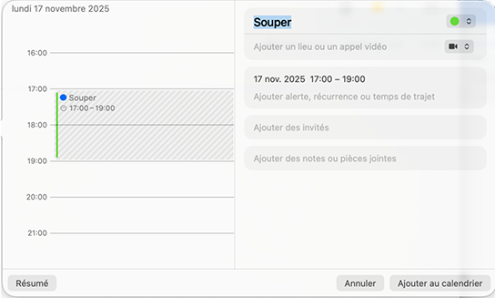 J’ajoute du détail et je clique « Ajouter au calendrier ».