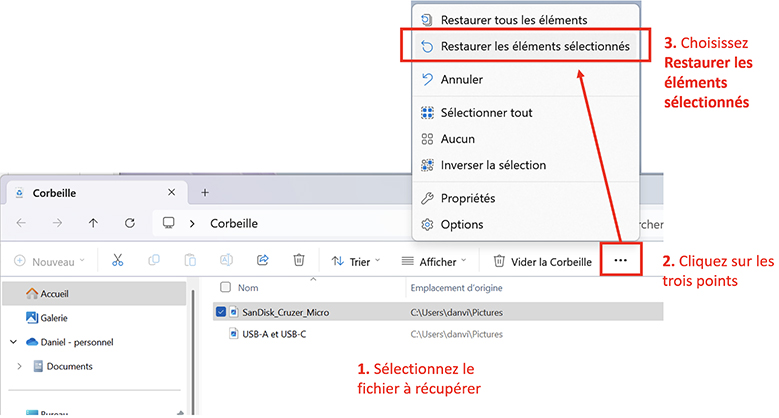 Récupérer un fichier de la corbeille Windows