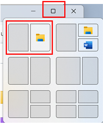 Nous allons les mettre côte à côte. Pour ce faire, déplacez votre pointeur de souris au-dessus du petit carré en haut à droite, puis, sans bouger, vous verrez apparaître un choix de disposition. Choisissez la disposition de deux fenêtres côte à côte.