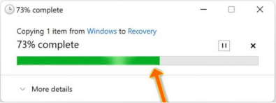 Notez que le temps de la copie d’un dossier varie selon la quantité de données à copier. Par exemple, il est fort à parier que votre dossier Images, s’il est bien chargé, prendra plusieurs minutes à copier l’intégralité de son contenu. À ce moment, vous verrez une fenêtre de progression apparaître le temps de la copie intégrale.