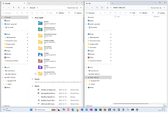 La fenêtre d’explorateur se place automatiquement d’un côté. Cliquez sur la seconde afin qu’elles soient l’une à côté de l’autre.