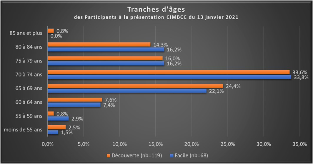 Dans votre club informatique, environ 90 % des participants aux présentations font partie des plus de 65 ans comme le montre le graphique ci-dessous.