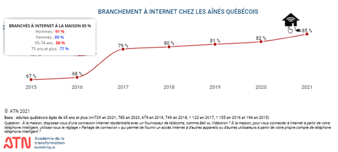 Toujours selon cette Académie, 85 % des aînés ont un branchement à Internet, comme le montre ce graphique.