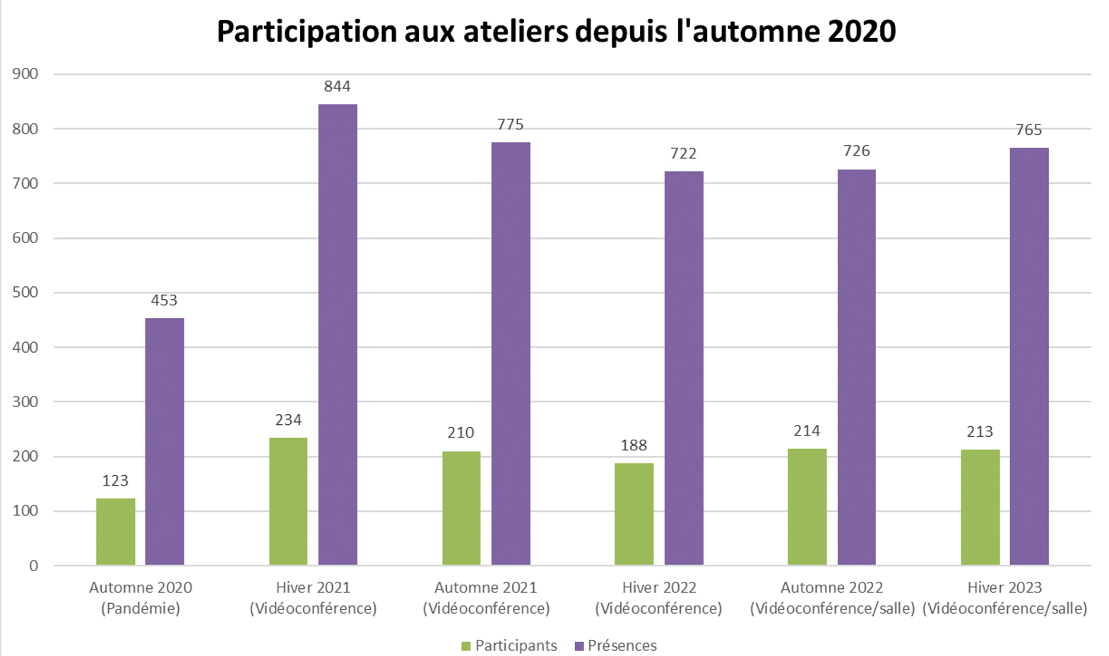 Participation aux ateliers depuis l’automne 2020