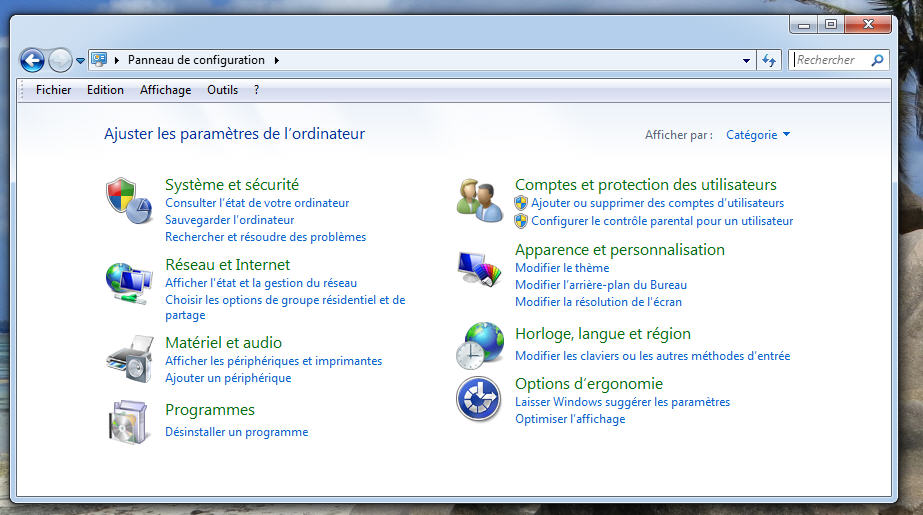Dans le menu « Démarrer, ouvrir le menu « Panneau de configuration » puis dans le volet « Comptes et protection des utilisateurs« , cliquer sur « Ajouter ou supprimer des comptes utilisateurs »: