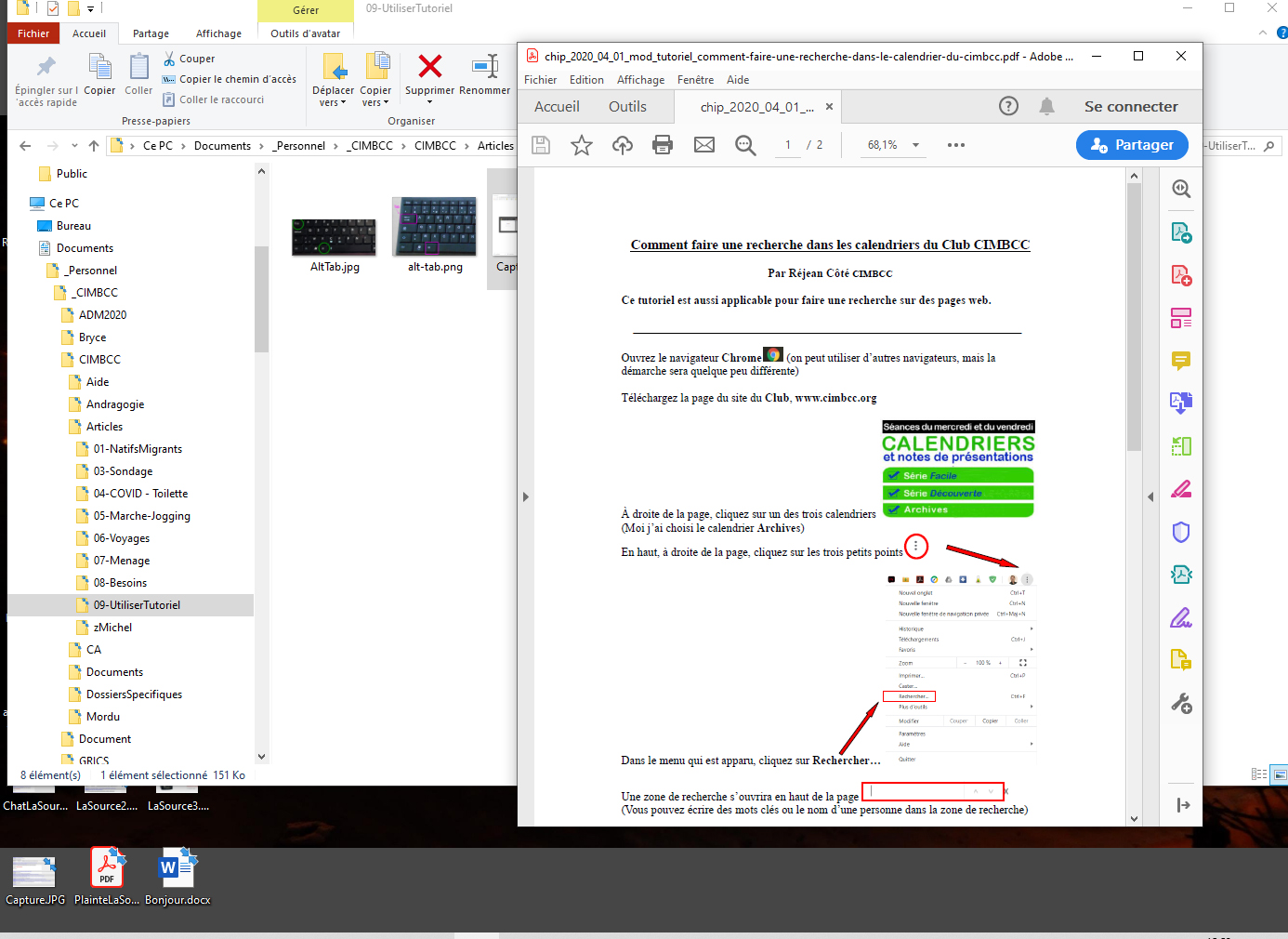 Pour les besoins de l’exercice, j’utiliserai un texte de Réjean Côté se trouvant sur le site du club et ayant pour titre : Comment faire une recherche dans le calendrier du Club CIMBCC.
