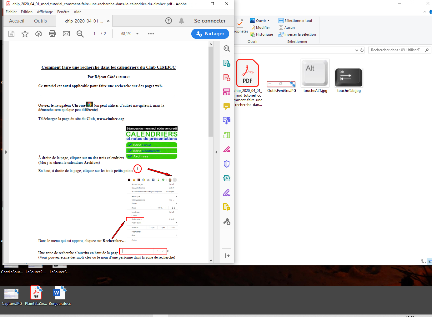 2. À votre écran, vous avez le document de Réjean en PDF. Il vous dit d’ouvrir le navigateur Chrome. Ouvrez-le!