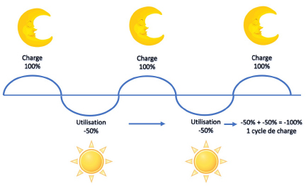 - Le lendemain, vous utilisez à nouveau 50% de votre pile.