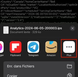 - Le jour suivant une recharge de votre appareil, copiez le dernier fichier d’analyse disponible. Pour ce faire aller dans Réglages -> Confidentialité et sécurité, au bas de la page allez dans Analyse et améliorations, puis dans Données d’analyse.