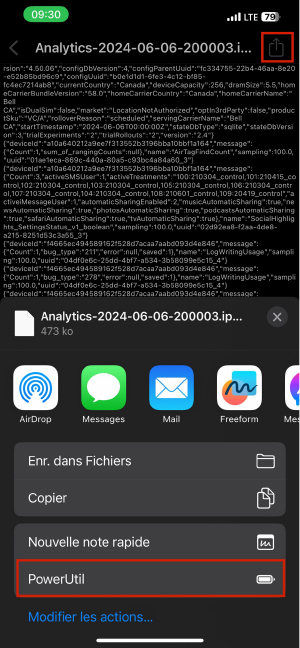Une fois le fichier affiché, cliquer sur l’icône de partage au haut à droite de votre appareil, puis choisir PowerUtil dans les choix qui vous sont donnés.