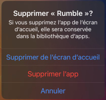 Mais voilà, le menu suivant ne vous offre pas la possibilité de supprimer celle-ci. Vous ne pouvez que la retirer de l’écran d’accueil ou annuler votre action. Choisissez Annuler pour le moment.