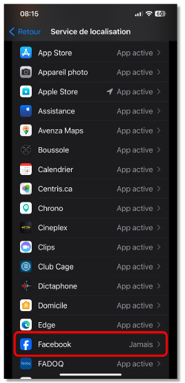 Personnellement, j’autorise la localisation uniquement lorsque l’application est active. Cela est pratique pour, par exemple, les applications de restauration. Pour certaines autres applications, comme Facebook, je n’accorde aucune autorisation. Disons qu’en ce qui me concerne, Facebook n’a pas besoin de savoir où je me situe lorsque j’utilise leur application.