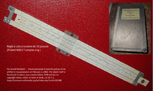Dans les années 60 et avant, il n’y avait pas d’ordinateurs ni de calculatrices électroniques, mais simplement des petites tabulatrices généralement utilisées pour la gestion et la comptabilité. Pour les scientifiques, dont moi, comme étudiant à l’école Polytechnique de Montréal, il y avait la règle à calcul et des tables de logarithmes.