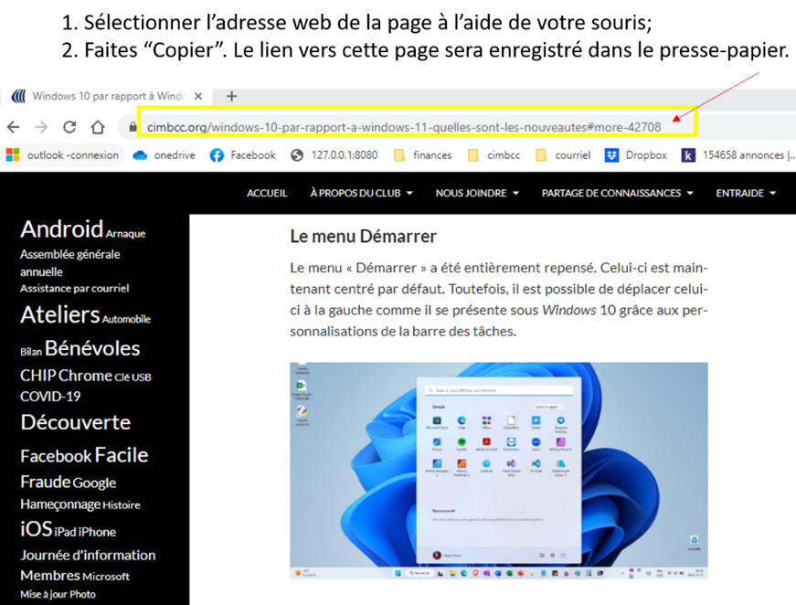 Il s’agit tout simplement de copier l’adresse de la page Web de cette façon :