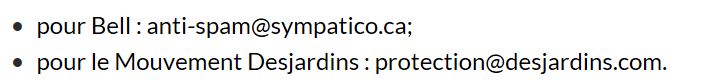 Vous pouvez aussi dénoncer un message en l’envoyant au groupe de sécurité d’une des compagnies visées par le message. Les adresses des groupes de sécurité de mes fournisseurs sont :
