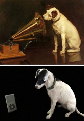 Gramophone et iPod – le chien de RCA Victor reproduit par Rachel Forrest dans le compte Twitter du Getty Museum