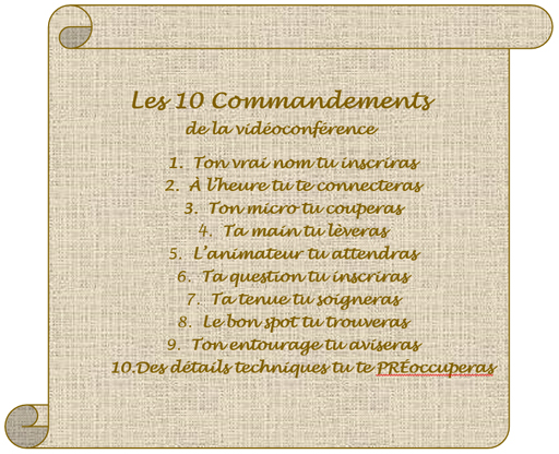 Tout comme une présentation en présence réelle (présentielle), un groupe de qualité favorise une bonne présentation. Les dix commandements suivants favoriseront votre succès avec Zoom.