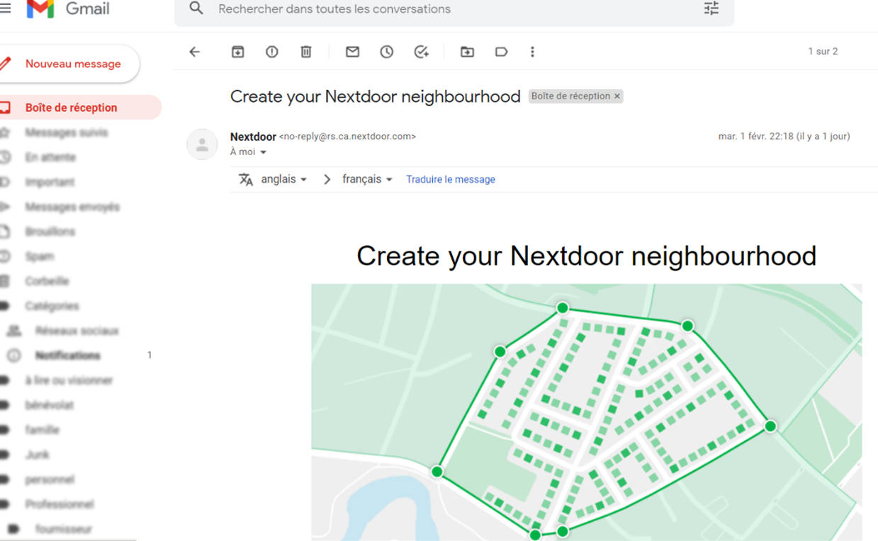 Personnellement, je n’ai pas encore envoyé d’invitations à mes voisins. Je préférerais d’abord leur faire connaître de vive voix la possibilité de créer une communauté locale, question de savoir ceux qui sont intéressés. De plus, dans mon cas, il y a seulement quatre des voisins de mon périmètre Nextdoor dont je possède soit l’adresse de courriel ou qui font partie de mon réseau Facebook.
