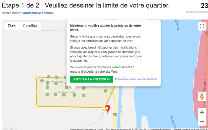 Vous verrez des domiciles apparaître au fur et à mesure de la création de votre périmètre de voisinage.