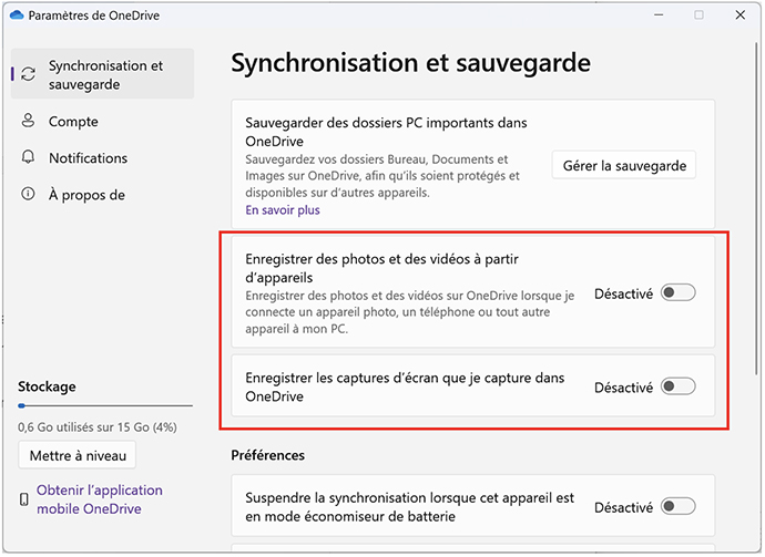 Ou encore, lorsque je fais une capture d’écran, je ne désire pas que celle-ci se retrouve systématiquement dans mon espace OneDrive. Personnellement, je préfère gérer moi-même mes affaires.