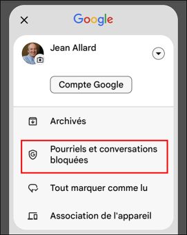 Une nouvelle fenêtre s’ouvre, puis touchez Pourriels et conversations bloquées.