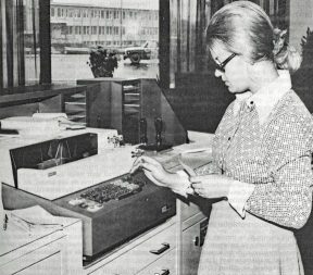 Dans les années 50 et 60, les succursales des banques travaillaient à la mitaine. Chaque client avait son livret de compte maintenu manuellement par le personnel. En plus, le personnel bancaire inscrivait manuellement les transactions sur des cartons individuels répertoriés dans un grand tiroir de classement. La comptabilité de chaque succursale était faite localement et manuellement. Il n’y avait pas de service entre les succursales pour la clientèle.
