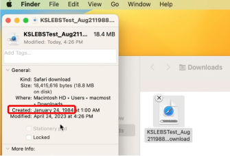 Autre clin d’œil, lors du téléchargement d’un fichier avec Safari sur macOS, avant que le téléchargement ne soit terminé, utilisez le bouton droit de la souris sur l’icône de téléchargement et choisissez « Lire les informations ». La date indiquée sera du 24 janvier 1984 tant que le téléchargement n’est pas complété. Pourquoi cette date ? Il s’agit de la date de lancement du premier Macintosh.