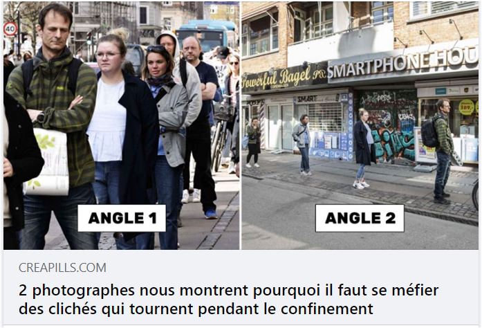 Voici deux photos qui montrent qu’il est facile de donner l’illusion que des gens ne respectent pas les consignes de distanciation physique alors qu’au contraire, les gens sont très respectueux des consignes.