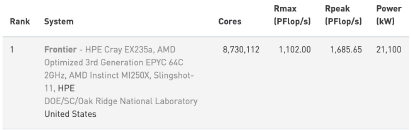Source : https://top500.org/lists/top500/list/2022/11/