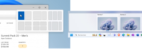 Encore une fois, il y a beaucoup de nouveautés sous le capot avec cette version. Celles qui sont dignes de mention sont : un mode « Snap » pour diviser l’écran entre plusieurs applications, l’intégration de Microsoft Teams, pour les conversations instantanées et visioconférences, et le mode de bureaux multiples améliorés.