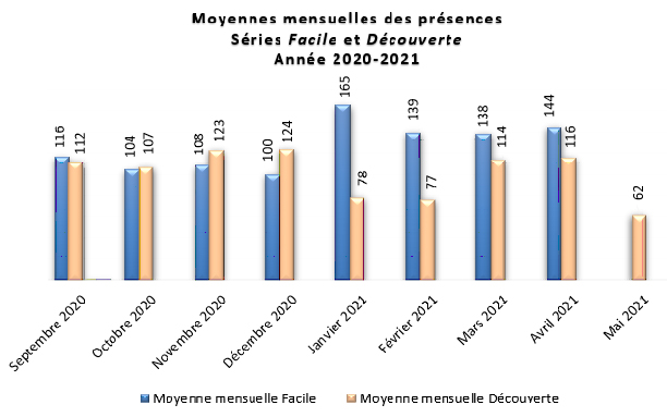 Le bilan de la participation aux séances de 2020-2021 inclut :