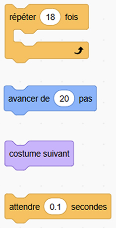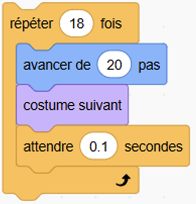 Le bloc répéter 18 fois demande à l’ordinateur de répéter 18 fois les instructions qui se trouvent entre la partie supérieure et la partie inférieure du bloc. Au besoin, le programmeur peut modifier la valeur de 18.