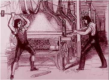 Ça n’est pas la première fois qu’on détruit des machines pour tenter de ralentir le progrès, mais c’est sûrement la première fois qu’on le fait d’une manière aussi structurée. À partir de mars 1811, les luddites vont de village en village la nuit venue. Masqués et déguisés, coordonnés entre eux grâce à des messagers clandestins, ils démolissent et brûlent les machines automatisées au nom d’un chef probablement fictif, le général Ludd.