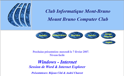 Par exemple, vous pouvez reculer dans le temps et examiner le site Web du CIMBCC au 4 février 2007 en cliquant ici.