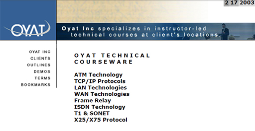Vous retrouverez l’apparence de mon propre site Web commercial au 17 février 2003 :