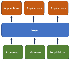 Schéma simplifié du rôle du noyau d’un système d’exploitation