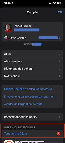 Si je lance l’application App Store, je vois dans le coin supérieur droit mon compte avec le même nombre qui s’affiche.