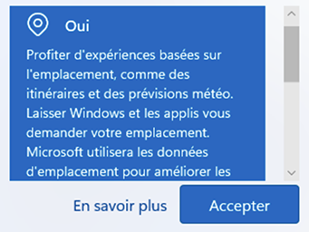 • Au niveau de l’emplacement, je vous recommande de choisir la case Oui, puis cliquez sur le bouton Accepter.