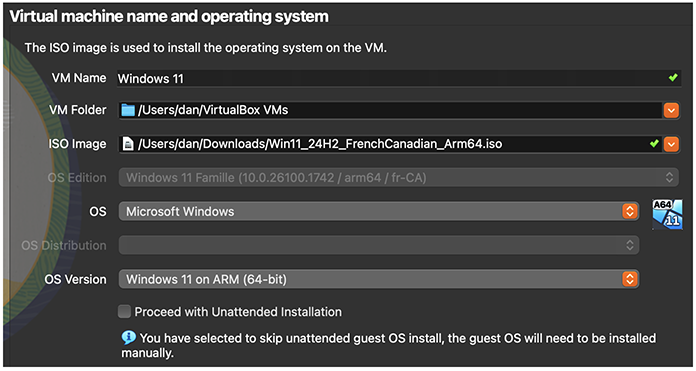 De retour à la fenêtre, décocher Proceed with Unattended Installation. Votre fenêtre devrait ressembler à celle-ci :